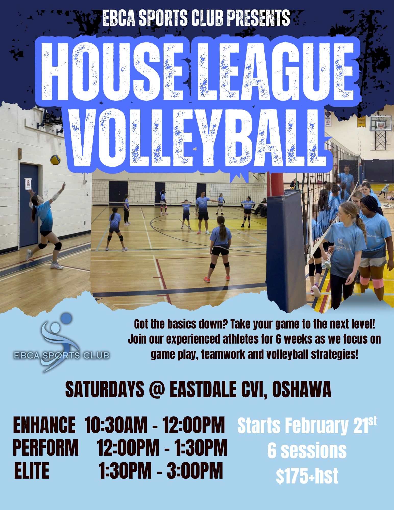 EBCA House League Volleyball is a 6-week, game-play focused program for athletes who have the fundamentals down and are ready to apply their skills in real game situations. Players will develop teamwork, decision-making, and volleyball strategy in a fun, supportive environment designed to build confidence.